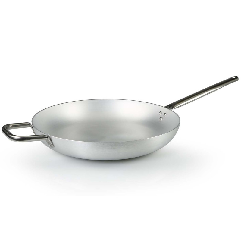 The Professional Alu Frying Pan by Barazzoni is designed for top-tier performance in both professional and home kitchens. Made from 99.5% pure aluminum with a long tubular stainless steel handle and side grip, it ensures excellent thermal conductivity for even cooking. Its optimized base guarantees maximum energy efficiency on induction cooktops, while the brushed aluminum finish inside and out adds elegance and durability. Perfect for cooking, reheating, and keeping food warm, even in the oven, this frying pan meets the needs of large gatherings and convivial occasions.