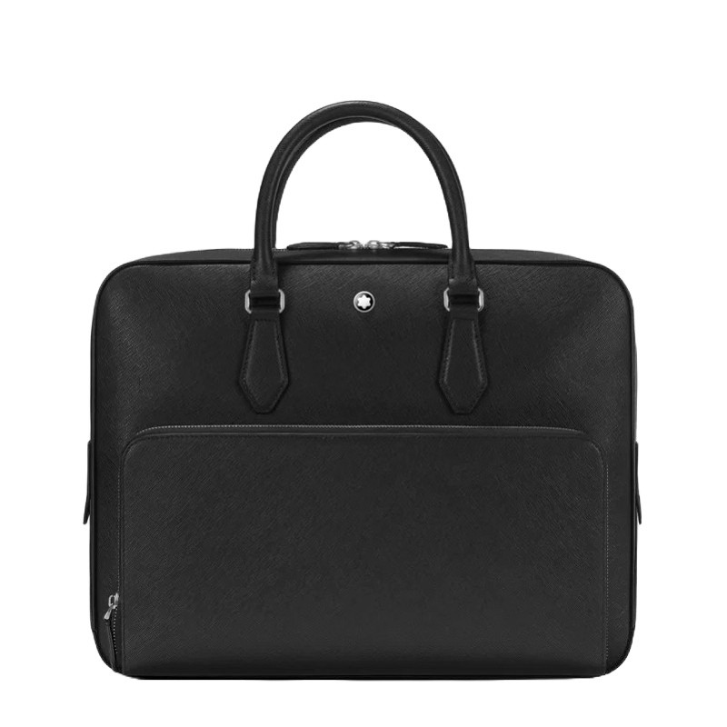 This document holder bag is equipped with a spacious main compartment and an external zippered pocket, making it perfect for storing A4 documents, electronic devices, and other essential work items. Additionally, it features two pockets for writing instruments. Thanks to its modular design, the accessory can be attached to other Sartorial bags. The bag is made of high-quality leather, which gives it an elegant and refined appearance. Material: Saffiano printed full-grain bovine leather. Colour: black. Lining: Cotton and polyamid lining Closure: Zip Dimensions: 39 x 9 x 30 cm Code: MB130271