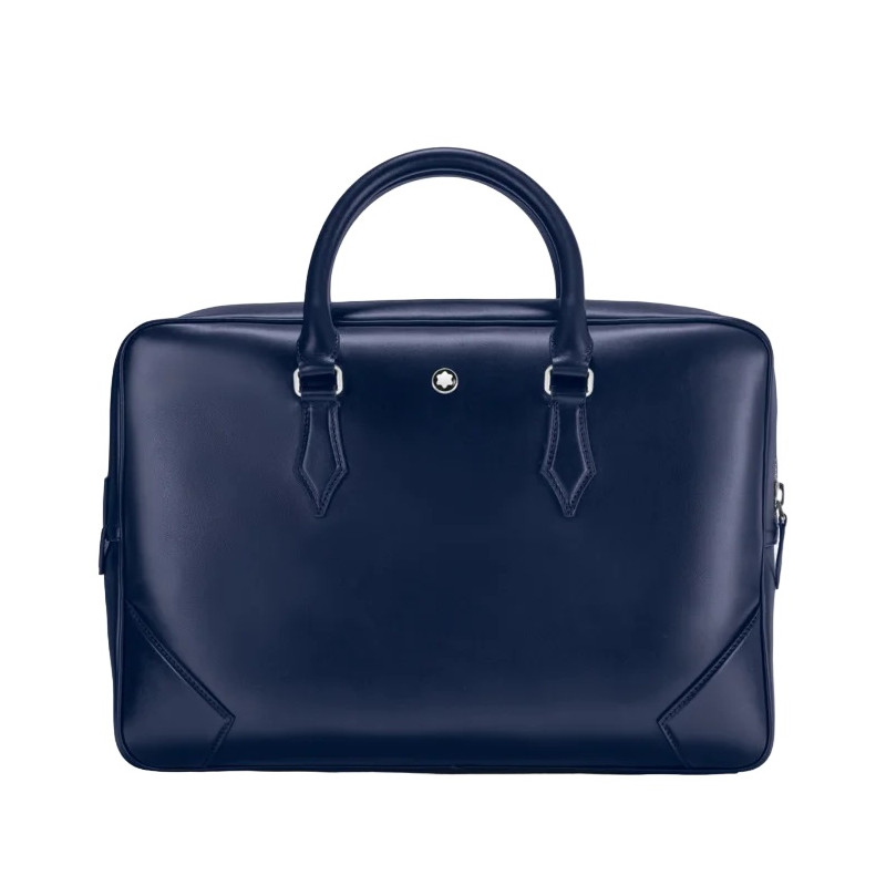 Inspired by the art of writing, the Meisterstück document case is an elegant companion for business travel. Made from a new type of extremely shiny leather in the Ink Blue color, it features stitching, zipper pullers, and handles that recall the shape of a pen, the true essence of Montblanc. A larger version of the logo adorns the bag. The leather top handles, removable leather shoulder strap, and satellite system offer a variety of carrying options, while the internal pockets ensure convenience. Sku: MB 131688 Material: Calf-skin leather Strap: Adjustable and removable leather shoulder strap Color: Ink Blue Lining: Coated canvas Dimensions: 37.5 x 8 x 27.0 cm DISCOVER THE COLLECTION: Meisterstück by Montblanc