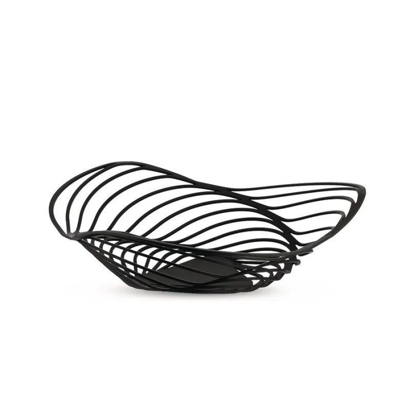 BREAD BASKET, TRINITY AC02 - ALESSI Trinity is a basket designed starting from a simple geometric shape that is developed, as if it were a vortex, to form an elegant concentric structure. Adam Cornish's desire is to recreate the appearance of a natural element through modern industrial production processes. The dynamic shape of the "Trinity" basket is achieved through a laser-cutting process of the steel sheet, subsequently shaped with a mechanical operation Basket produced in steel