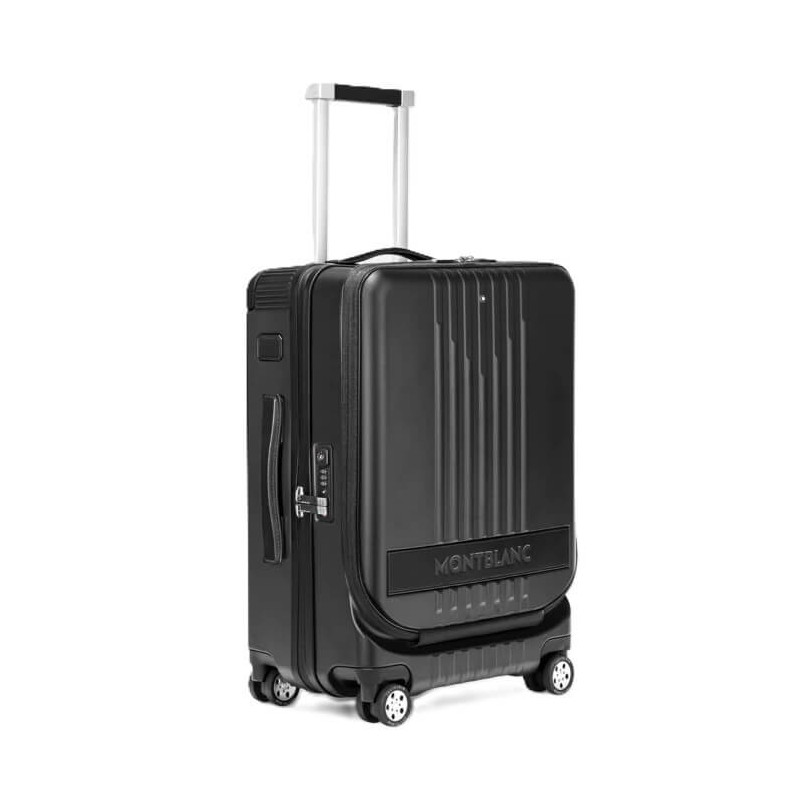 TROLLEY 55/20, #MY4810 - MONTBLANC Discover the #MY4810 luggage collection and select your ideal travel companion. This is a compact suitcase, made of lightweight polycarbonate with leather details, highly functional thanks to its four wheels, adjustable handle, and intelligent organization with numerous compartments. Dimensions: 35 x 55 x 21 cm (volume 34 L) Material: Polycarbonate SKU: #MY4810 Colors: Pewter, Black, and Clay Jacquard lining with hexagonal pattern