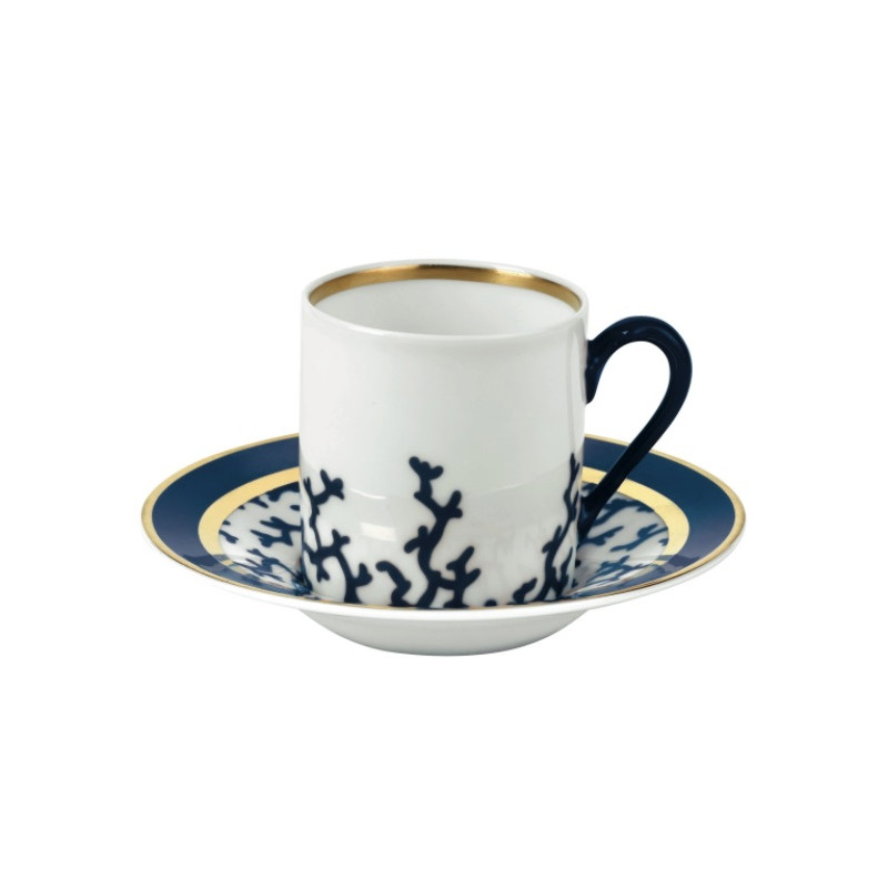 Designed by Alberto Pinto for Raynaud. Cristobal is a dish served with a saturated and opulent design touches that characterize a unique and impactful elegance as a hallmark of this talented decorator. A set available in coral, turquoise and navy for an original and elegant table. Saucer included Design : Alberto Pinto Reference : 013/013 Saucer diameter : 5,6 cm Height : 6 cm Cont : 13 cl Material : Porcelain