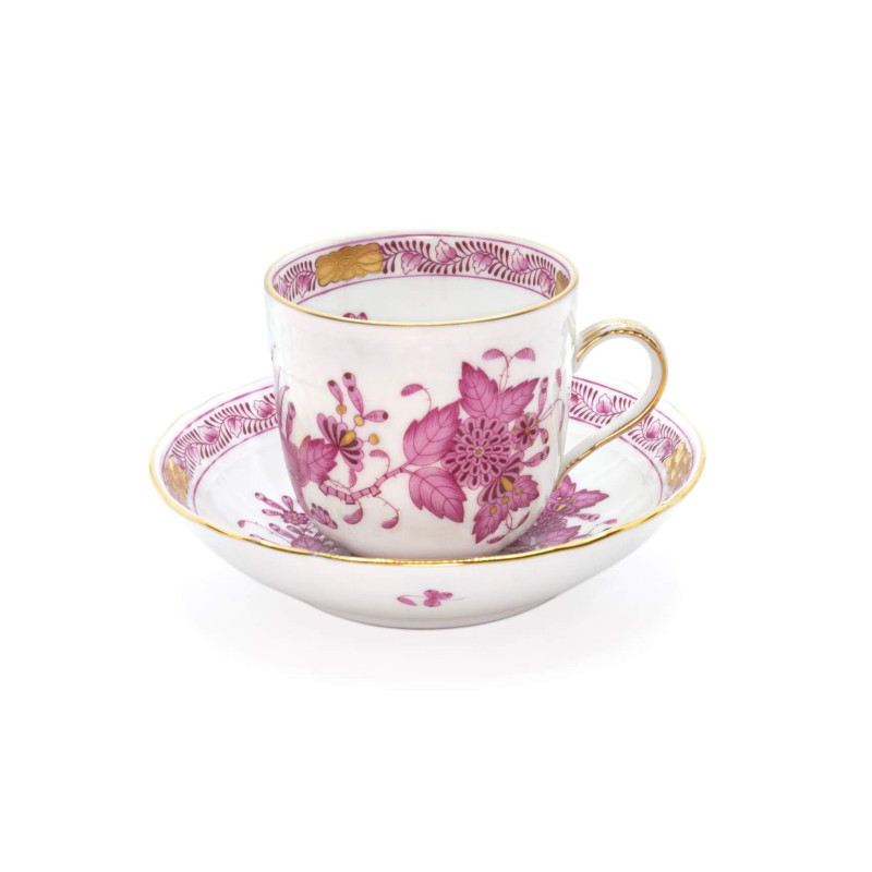 Coffee cup with saucer, plate 11 cm and cup diameter 6 cm Material: fine china with gold decorations Code: 1727 Hand wash recommended. Never microwave an item with gold or platinum trim