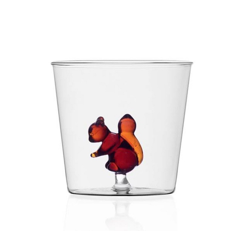 Collection Animal farm Design Alessandra Baldereschi Color Clear Brown Material Borosilicate Manufacturing Handmade and modeled by lamp Dimensions H. 8 D. 8.5 capacity 350 ml Washing: Dishwasher safe at low temperatures (40° recommended).