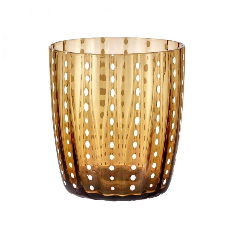AMBER CARNIVAL GLASS, 720LS0904 - LIVELLARA This collection offers various sources of inspiration, with some seeing it as an opportunity to dance, while others think of the Rio Carnival. If you need a spark of color and energy, this collection is perfect for you! The Livellara Milano Carnival glass is made of blown glass and has a delicate relief decoration, making it perfect for an elegant table setting. Hand washing is recommended. Thanks to its skills, rigorous product selection, and exceptionally high quality standards, Livellara ranks at the top of the tableware glassware sales industry. Technical specifications: Capacity: 0.33 L Diameter: 8.5 cm Model: 720LS0904 Height: 8.5 cm Type: Glasses Brand: Livellara