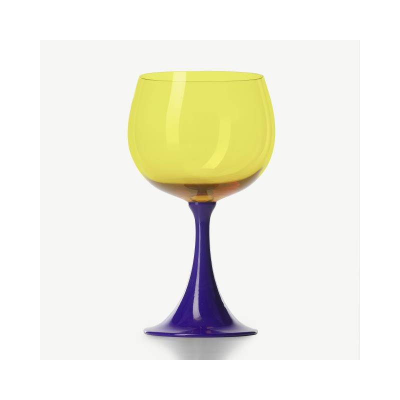 The Burlesque collection, created in collaboration with the architect and designer Stefano Marcato, is thus called for the brightness of the chromatic combinations that follows closely the comedy and the euphoria typical of the show. The BURGUNDY glass, convex and wide to endorse the red wine perfumes, becomes an original object of design, thanks to the union between the transparencies and the opaque colors. Material: Murano glass Dimensions: h 21 cm - Ø 10,2 cm