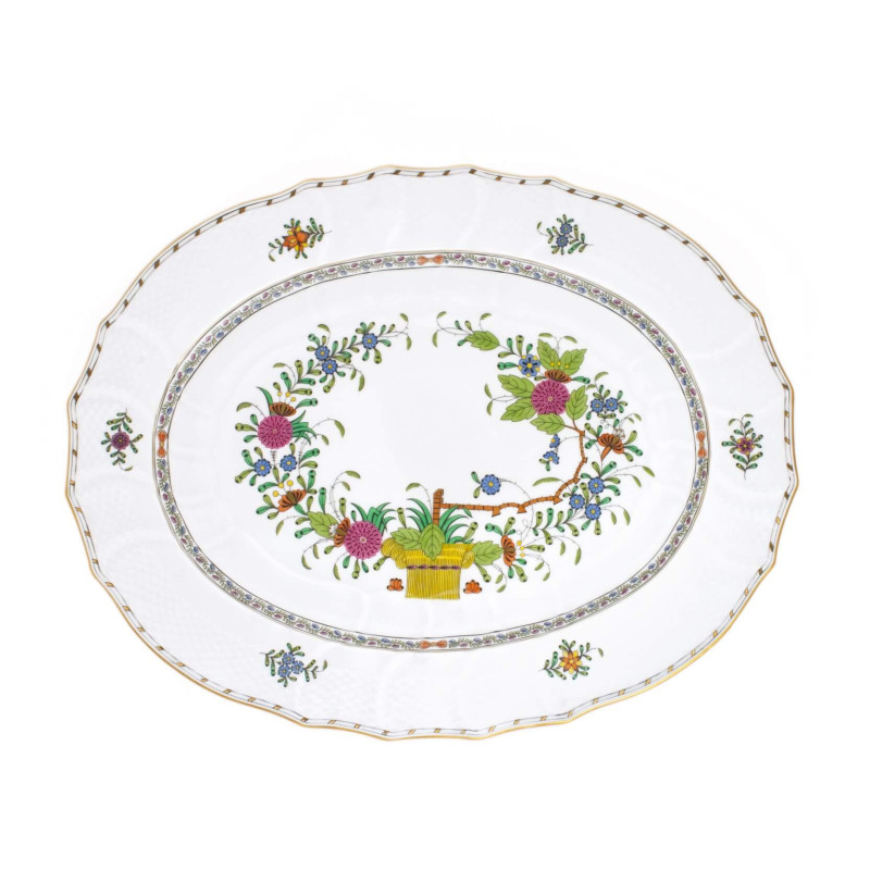 Oval tray 46 x 37 cm Material: fine china with gold decorations Code: 1100 Hand wash recommended. Never microwave an item with gold or platinum trim
