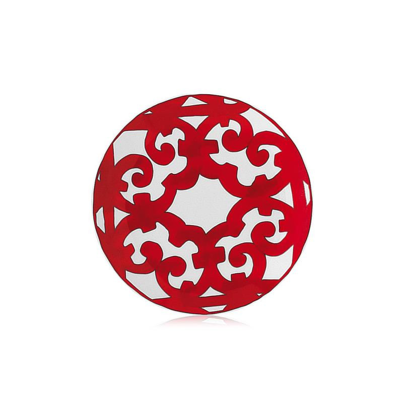 Hermes Balcon Du Guadalquivir Bread & Butter Plate n°3 Along the banks of the Guadalquivir in southern Spain, Andalusian homes proudly display the lace-like patternsof their wrought-iron balconies. This porcelain collection highlights their exuberance in a fiery red hue. Dimensions: 17 cm Material: porcelain Code: 11212P For all Hermès products that are not available at the time of purchase, please consider a delivery time of 6 to over 12 months