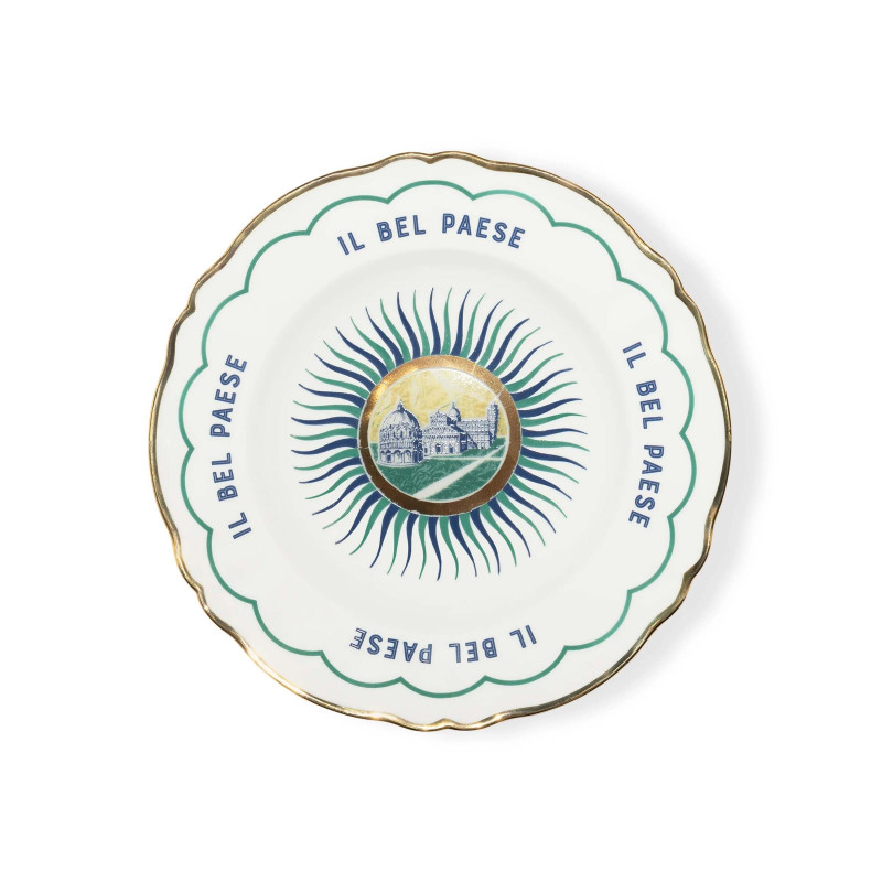From the graphics created by Sam Baron comes "Un Buon Ricordo", a collection that celebrates Italy and its refined lifestyle, recognized worldwide. Monuments, landscapes, and symbols typical of the Belpaese illustrate and characterize this new, iconic series of plates. Porcelain plate with gold rim decal Dishwasher safe, up to 250 washes Not suitable for microwave use Material: Porcelain Sku: BEL02043 DISCOVER THE COLLECTION: Un Buon Ricordo, Bitossi Home