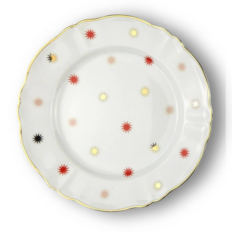 DINNER PLATE 26,5 CM VOLTA GOLD THREAD, ABR 0001 - BITOSSI HOME The Abracadabra line by Bitossi Home is the perfect combination of style and functionality. Each piece is made with high-quality materials and carefully finished to ensure an elegant and long-lasting product. The products in the Abracadabra line are designed to meet every need. The ceramic cups with enchanting decorations and the elegant plates and trays will be perfect for special occasions, both with family and friends. Porcelain plate with gold edge decal Suitable for dishwasher up to 250 washes Not suitable for microwave use Material: Porcelain Code: ABR-0002 Diameter: 26.5 cm Abracadabra, design by La Tigre Discover The Collection: Abracadabra | Bitossi