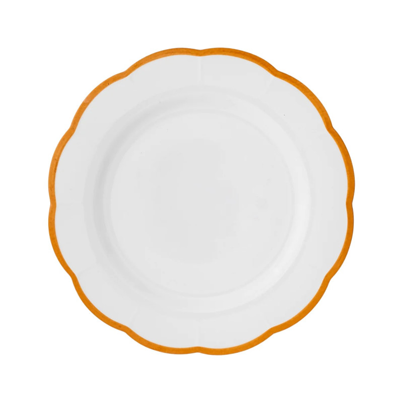 Flat Plate 27.5 cm, Petalo - Bitossi Home Petalo is a collection designed for both daily use and dining. Create your own set with plates, cups, salad bowls, and serving plates made from white Ironstone ceramic with colored glazed edges. Choose from the 6 colors available in the collection. Flat Plate made of white Ironstone ceramic with colored glazed edge Dishwasher safe Microwave safe