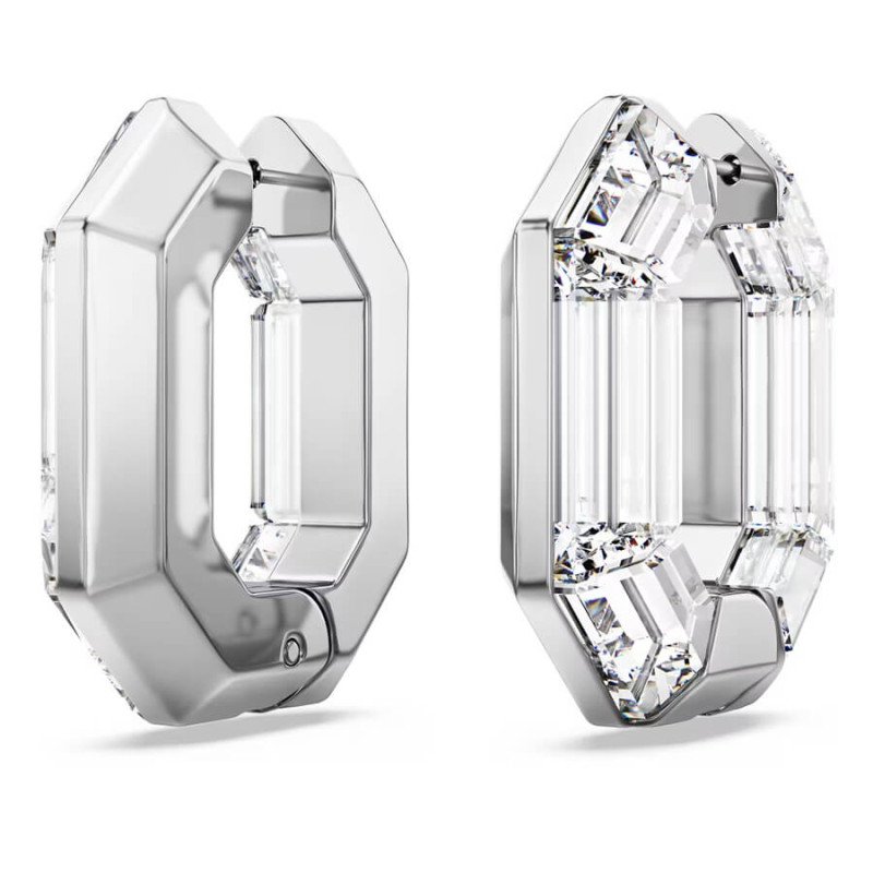Lucent hoop earrings, Octagon shape, Small, Swarovski Collection: Lucent Size: 3 x 0.8 x 2.4 cm Material: Crystals, Aluminum Weight (individual piece): 7.3 g