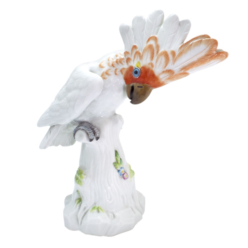 Bird sculptures in Meissen porcelain are imbued with a captivatingly authenticity right down to the colouring of their plumage - all the upshot of artistic design work of the highest quality. Figures in Meissen porcelain have been lovingly crafted by hand - with no detail spared - since the Manufactory's inception in 1710. Beautiful figurine depicting a porcelain cockatoo, Hand-made decorated Dimensions: h 25 cm Code: 900100-77034