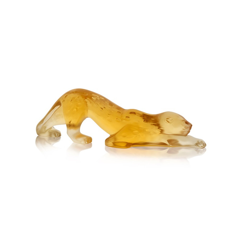 ZEILA PANTHER, AMBER, 10492800 - LALIQUE Zeila represents the power and elegance of an attacking panther. Handmade in France Dimensions: H 6,2 cm x L 21 cm x L 4,5 cm