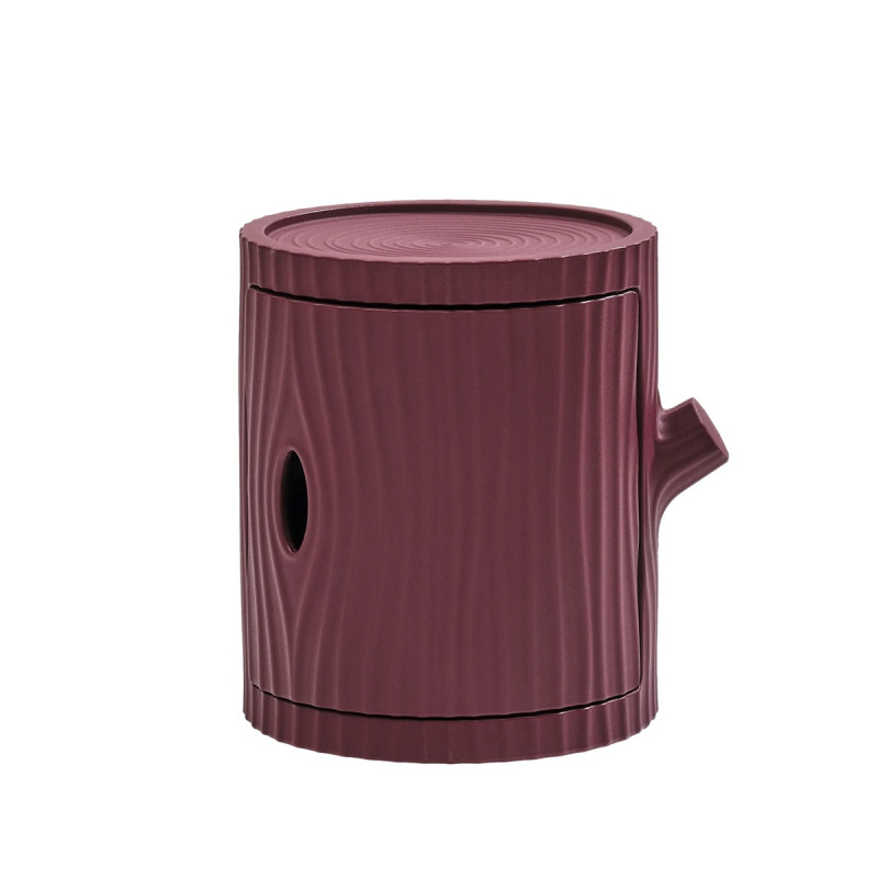 Tronco, designed by Furf Design Studio, is a multifunctional container inspired by the shape of a tree trunk. Made of recyclable polyethylene, it serves as a storage unit for essentials or as a surface to place objects. Its stackable design allows you to build sculptural columns that double as coat or towel racks.