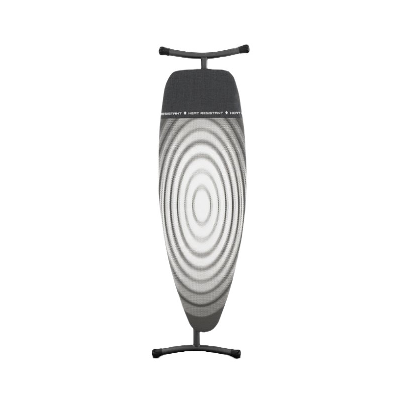 TITAN OVAL IRONING BOARD "D", 135 x 45 CM, 345647 - BRABANTIA Need some space? The Brabantia Ironing Board D is so wide, you can iron a shirt in one go. Drape it over the boards shoulder shape to iron it to perfection. There's no iron rest in the way, you can just leave your iron on the heat resistant zone on the cover. A truly great ironing board, that you can even use sitting down. Weight: 16.1 lb Dimensions: Height: 163,5 cm Length: 8,5 cm Width: 47 cm
