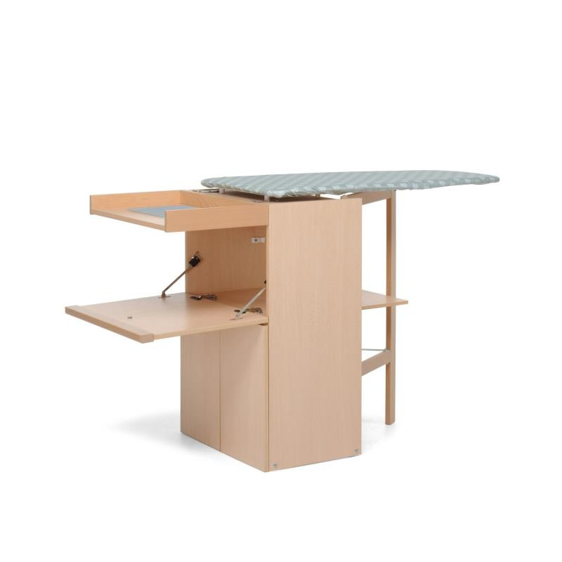 LO STIRO IRONING STATION - FOPPAPEDRETTI Lo Stiro by Foppapedretti is a wooden cupboard with foldaway ironing board, complete with convenient shelves for the linen and the iron. When closed, LoStiro is a stylish and elegant cupboard which moves easily thanks to its scratch-proof castors. The solid frame of the cupboard is in melamine chipboard and the support frame to the ironing board is in solid varnished beechwood, while the poplar plywood ironing board has ventilation holes. Laundry basket, wheels and 2 lateral board. Dimension cm Height, Depth, lenght