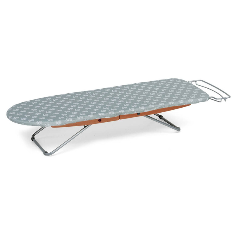 FOLDABLE IRONING BOARD, STIROFAST - FOPPA PEDRETTI Foldable tabletop ironing board. Solid multi-layer poplar wood surface with breathable holes. Equipped with an iron holder grid and a hanging hook for storage. Comes with a transport bag. Dimensions in cm (Height, Depth, Length): Open: H 18 x D 34 x L 114 cm Closed: H 10 x D 34 x L 50 cm