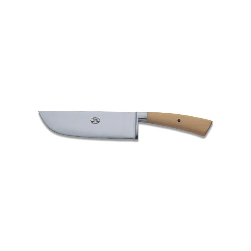 The Berti Pesto Knife 239 with a boxwood handle is specifically designed for finely chopping basil and other fresh ingredients to make traditional pesto. The specially shaped blade ensures precise cutting without bruising herbs, preserving their freshness and flavors. The boxwood handle provides a comfortable grip while adding a touch of artisanal elegance. Each knife is handcrafted and finished in Italy, showcasing the finest of Berti's craftsmanship and tradition.