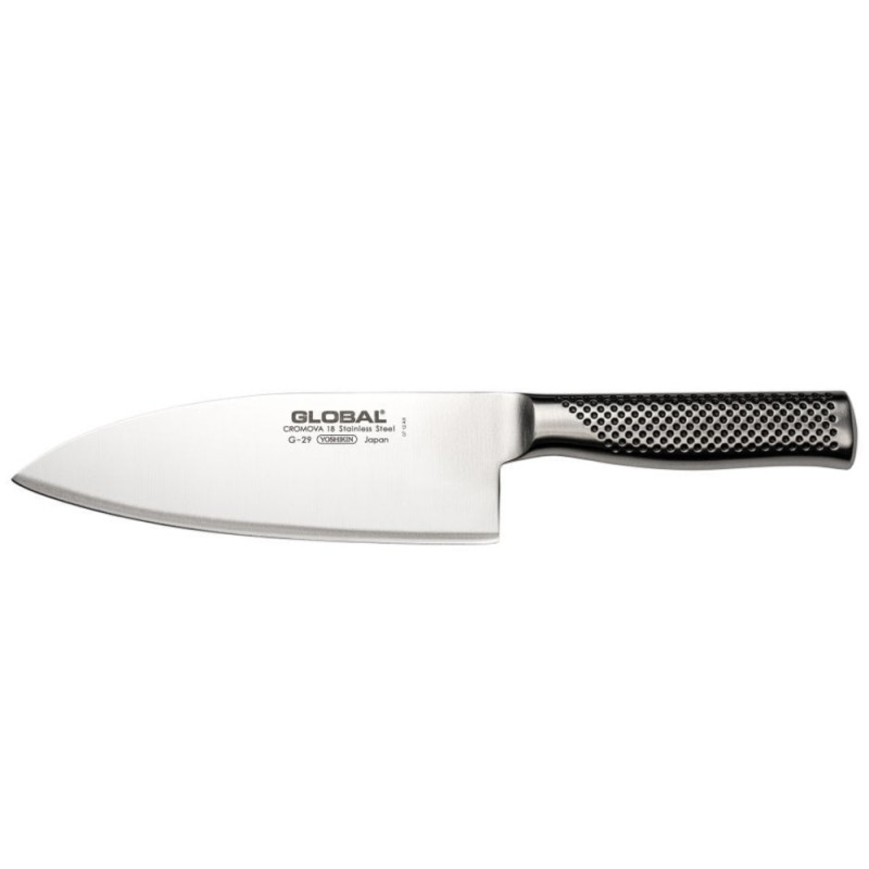 The G-29 from Global is a specialist knife ideal for working with medium-sized fish and poultry. With its deep 18 cm blade, it is particularly useful for processing whole fish and birds like chicken or turkey.