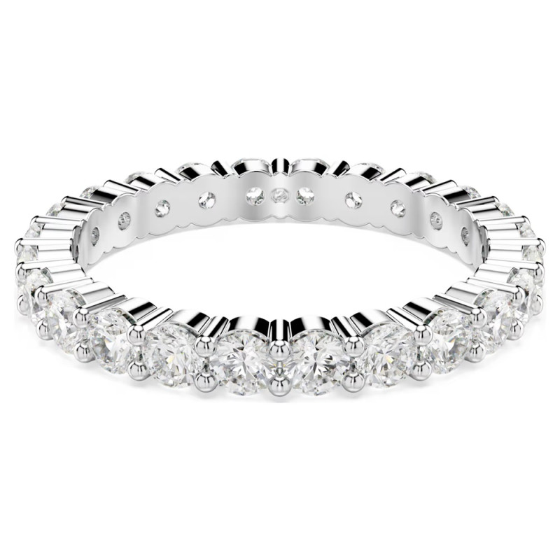 Elegant and radiant, the Matrix Vittore Ring by Swarovski is a refined take on the classic Vittore design. Silver-tone plated, this piece is adorned with round-cut Clear Crystals that create a stunning all-around brilliance. Its understated yet sophisticated style adds a subtle touch of light to your hand, perfect for any occasion. Wear it alone for a minimalist look or stack two or three for a more dazzling and personalized effect.