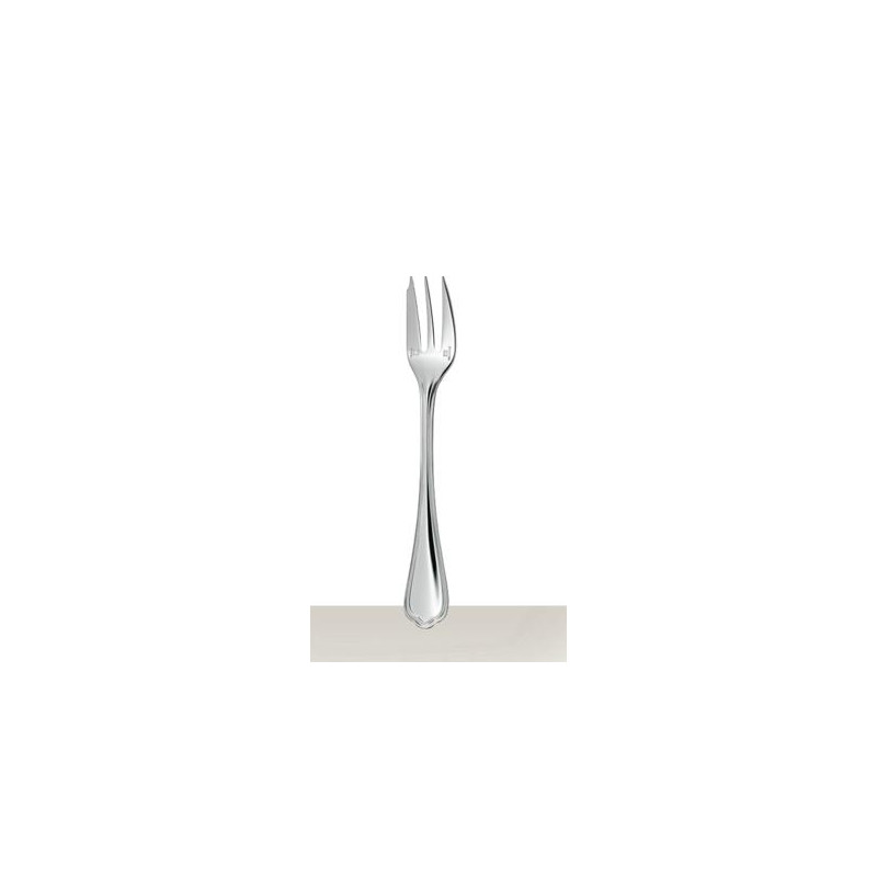 Christofle Spatour Silver Plated Cake Fork The silver plated cake fork in the Spatours pattern has a wide edge designed especially for cutting cake and pie on the plate. Reflective of its 19th century roots, the Spatours collection, which was available in the first Christofle catalogue in 1862, features generous curves, decorative heels and a slender rounded ridge common in Louis XV style. Launched in 1862, the slender ridge & curve were common decorative elements in the Louis XV style of the eighteenth & nineteenth centuries. MATERIAL • Silver Plated DIMENSIONS • : 16 cm
