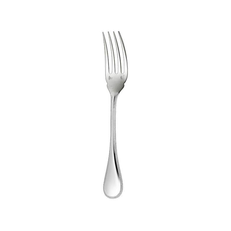 Christofle Perles SIlver Plated Fish Fork The silver plated fish fork in the Perles pattern can be used in conjunction with a fish knife to easily separate meat from fish bones. The Louis XVI-style Perles pattern, which features a single delicate line of beading reminiscent of a classic pearl necklace, was introduced in 1876. Launched in 1890, this pattern is inspired by the beaded ornamentation typical of the Louis XVI style. MATERIAL • Silver Plated DIMENSIONS • Length: 18 cm