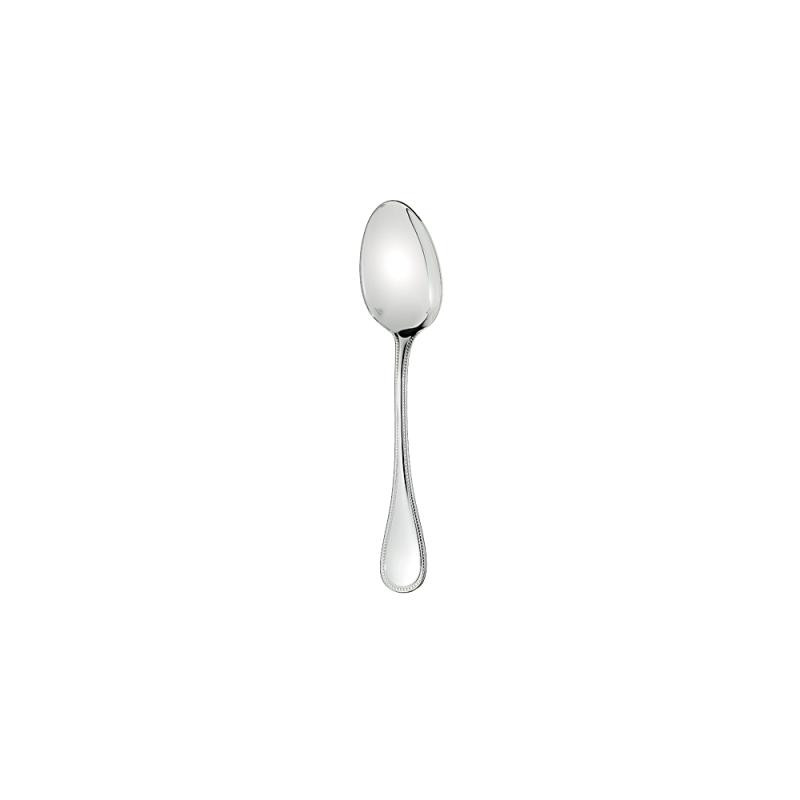 Christofle Perles SIlver Plated Espresso Spoon This silver plated espresso spoon in the Perles pattern is perfectly sized for use with a demitasse cup. The Louis XVI-style Perles pattern, which features a single delicate line of beading reminiscent of a classic pearl necklace, was introduced in 1876. Launched in 1890, this pattern is inspired by the beaded ornamentation typical of the Louis XVI style. MATERIAL • Silver Plated DIMENSIONS • Length: 10 cm
