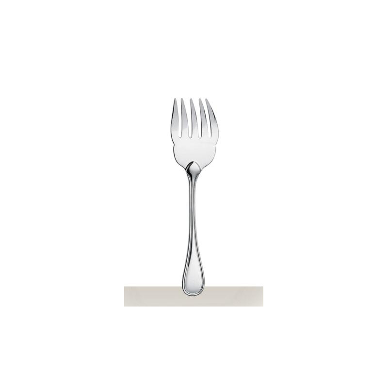 Christofle Albi Silver Plated Fish Serving Fork The silver plated fish fork in the Albi pattern can be used in conjunction with a fish knife to easily separate meat from fish bones to serve it. The Albi line, created in 1968, takes its inspiration from a French town located between Toulouse and Bordeaux and its famous cathedral known for its remarkable architecture, clean straight lines and single nave. Launched in 1967, this flatware was inspired by the straight, pure lines of the cathedral in Albi, France. MATERIAL • Silver Plated DIMENSIONS • :22 cm