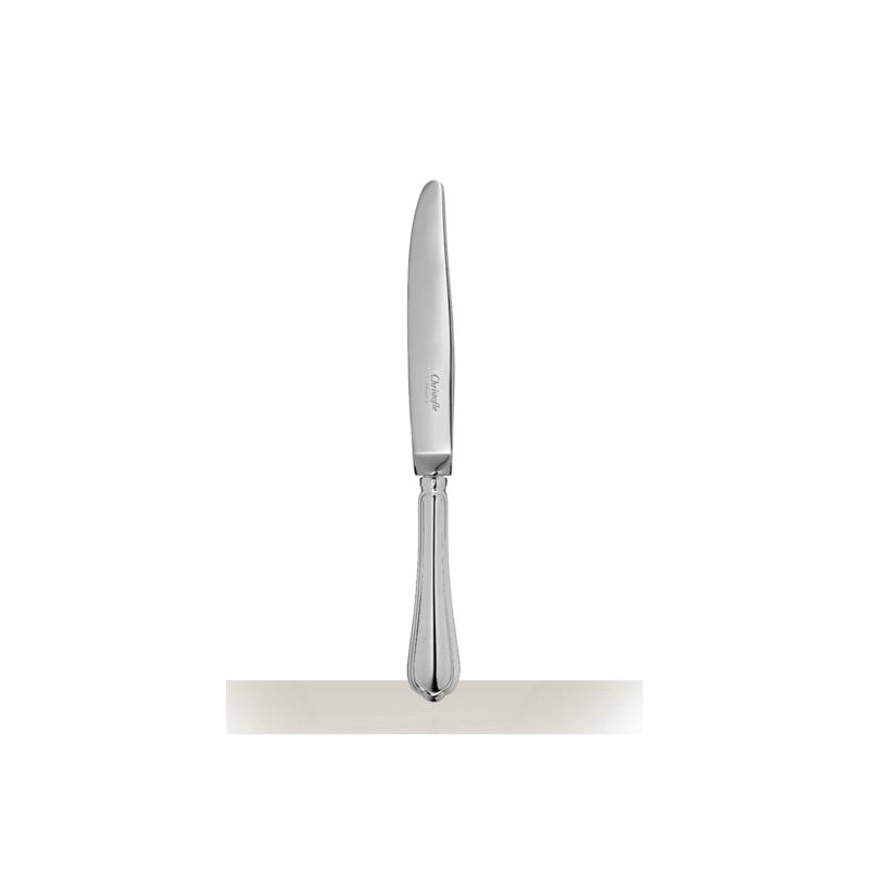 Christofle Spatours Silver Plated Dinner Knife The silver plated standard knife in the Spatours pattern has a steel blade to better resist wear and tear and to increase quality of slice. Reflective of its 19th century roots, the Spatours collection, which was available in the first Christofle catalogue in 1862, features generous curves, decorative heels and a slender rounded ridge common in Louis XV style. MATERIAL • Silver Plated DIMENSIONS • : 25 cm