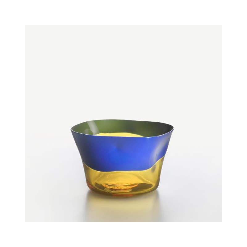 Light Blue and blue glass in Murano glass, handmade and with the aid of molds, inside which the masters NasonMoretti blow the molten material, a mixture created following some secret recipes that go back to the foundation of the factory. A technique developed in 1951 that required a squashing of the glass, which adapts to the hand and has distinctive ergonomics, makes it even more original. For this reason, every Dandy is a unique piece. DIMENSIONS: H 7 cm, diameter 12 cm