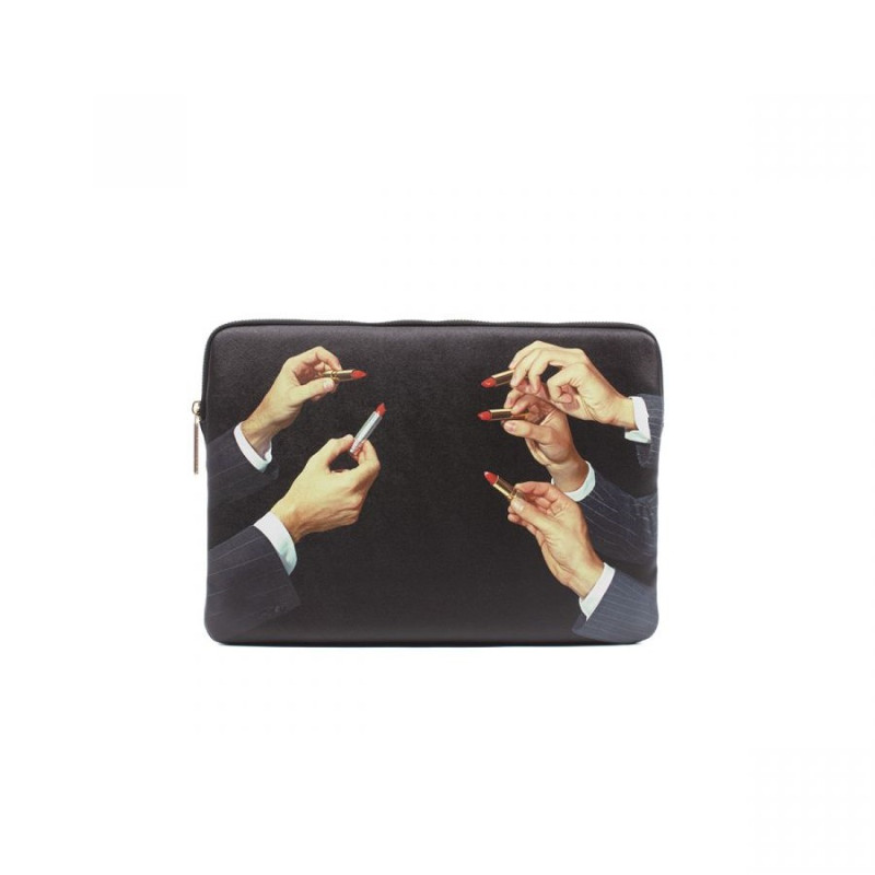 Laptop bag Lipsticks Black Design: TOILETPAPER Materials: 100% polyester interior, 100% pu exterior Dimensions: 34.5 x 25 h. 2 cm Code: 02564