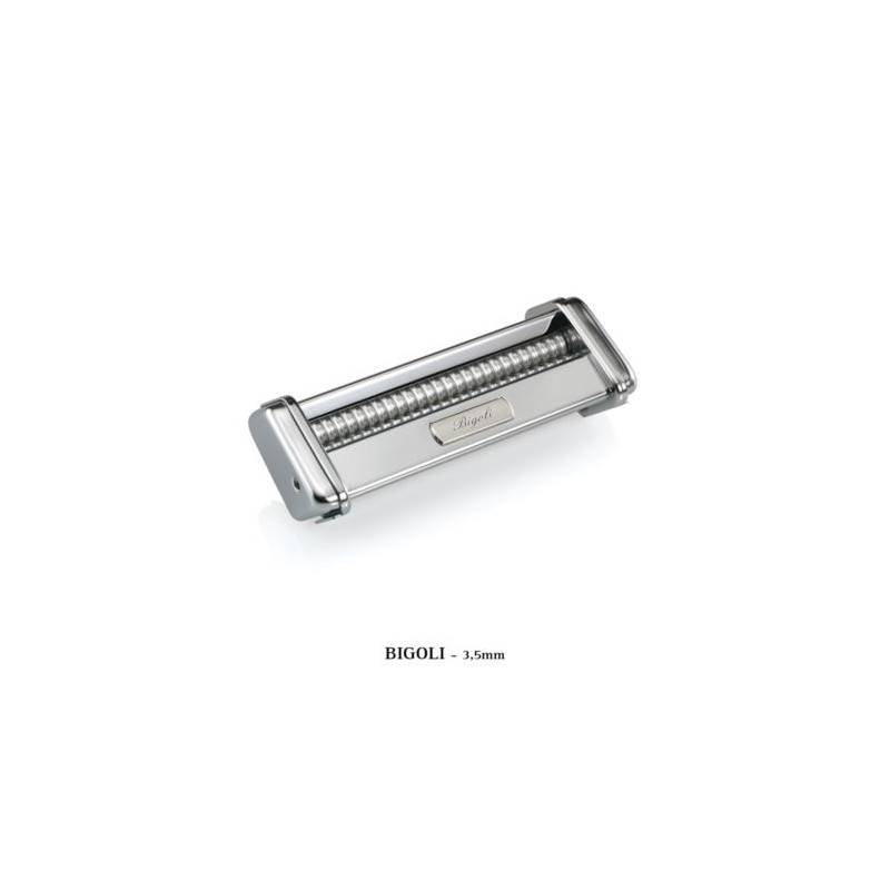 Bigoli Accessory Bigoli is a round pasta shape with a width of 3.5 mm. The recommended dough thickness is set at position 2 on the Lasagna accessory's regulator.