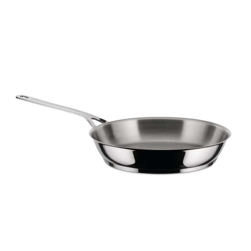 STAINLESS STEEL PAN, POTS&PANS AJM110 - ALESSI The long-handled frying pan is an essential piece in the kitchen, even for those who choose to have a minimal equipment: versatile and easy to handle, it is suitable for preparing a wide variety of dishes. Designed by Jasper Morrison and made of 18/10 stainless steel, the frying pan from the Pots&Pans series combines minimal design and high functional performance. Material: stainless steel 18/10 Suitable for induction and dishwasher
