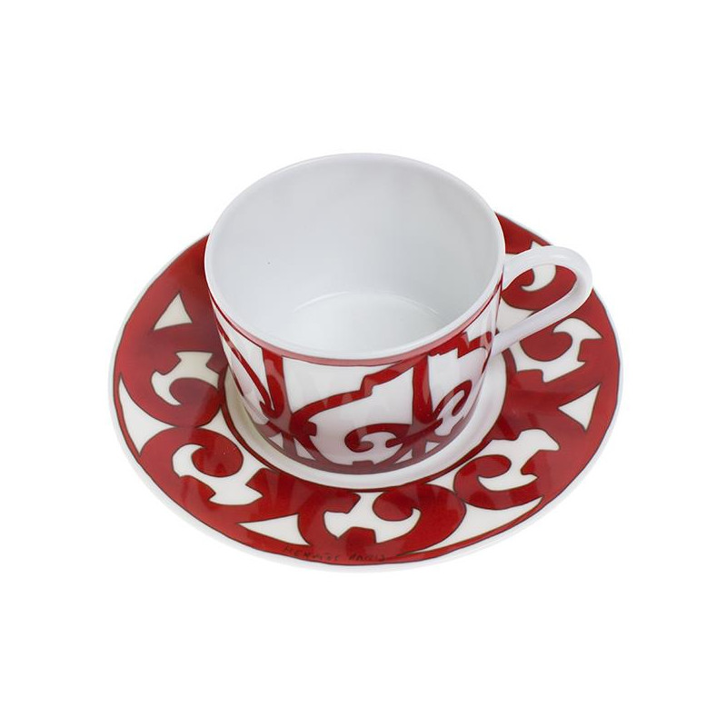 Hermes Balcon Du Guadalquivir Tea Cup & saucer Along the banks of the Guadalquivir in southern Spain, Andalusian homes proudly display the lace-like patternsof their wrought-iron balconies. This porcelain collection highlights their exuberance in a fiery red hue. Capacity: 16 cl Material: porcelain Code: 11016P For all Hermès products that are not available at the time of purchase, please consider a delivery time of 6 to over 12 months