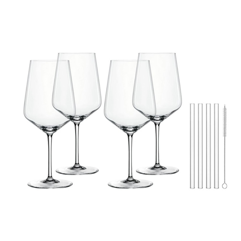 The Tastes Good collection by Nachtmann embraces three key moments of pleasure that emphasize our brand's philosophy! Looks Good - clear glass straws complement these elegant crystal products, ideally sized for each item. Tastes Good - prepare drinks at home without disposable plastic or paper that alters your pleasure. Feels Good - celebrate sustainable, reusable, and dishwasher-safe products. This product is industrially made. Due to the production process, small tolerances in measurements are possible. This item is dishwasher safe. This set contains 4 Nachtmann Spritz cocktail glasses and 4 glass straws (15 cm). Volume: 630.0 cc Height: 22.5 cm Material: Crystal