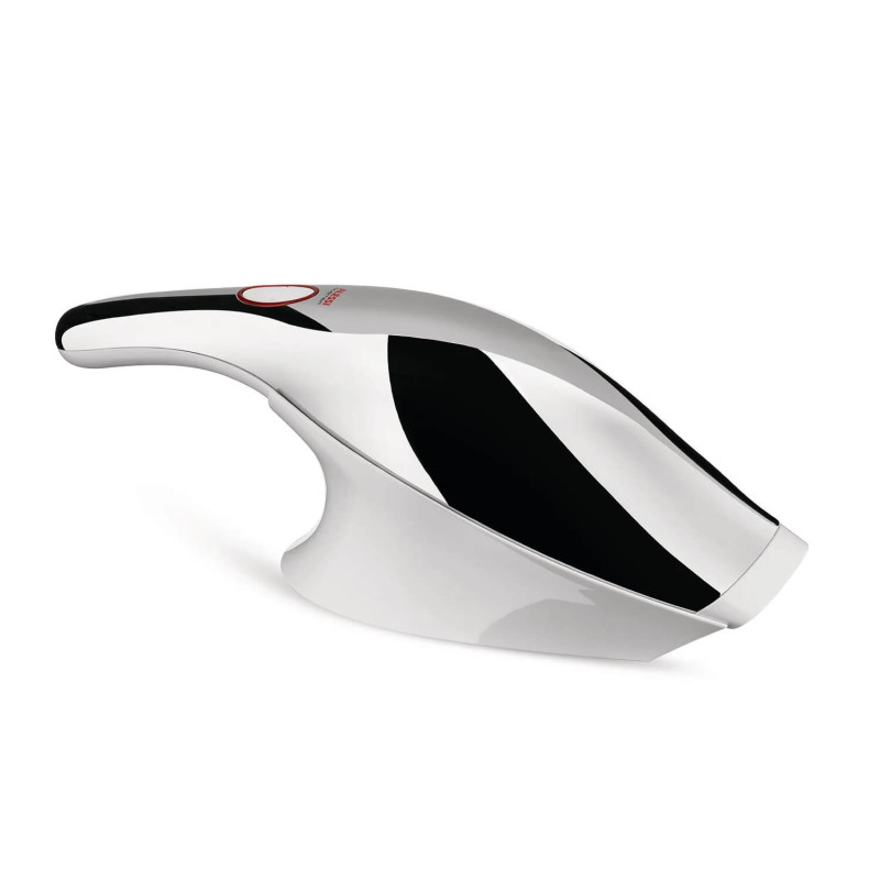 HANDHELD TABLE VACUUM CLEANER SG67W - ALESSI Handheld vacuum cleaner, rechargeable in 18/10 stainless steel mirror polished and thermoplastic resin, white. Charger in thermoplastic resin with integrated crevice tool and wet nozzle. European plug. Code: SG67 W Designer Stefano Giovannoni Designed by Stefano Giovannoni. Charger in thermoplastic resin with integrated crevice tool and wet nozzle. European plug. Width (cm): 11.50 Height (cm): 14.00 Length (cm): 38.50