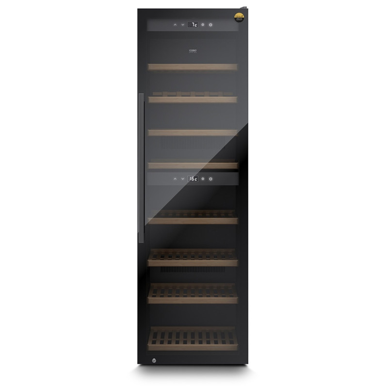 The WineExclusive 180 Smart by CASO Design combines professional capacity with advanced technology. With WiFi Smart Control via the CASO WineControl App, you can remotely manage 2 independent temperature zones (5–20°C) and store up to 180 bottles under ideal conditions.