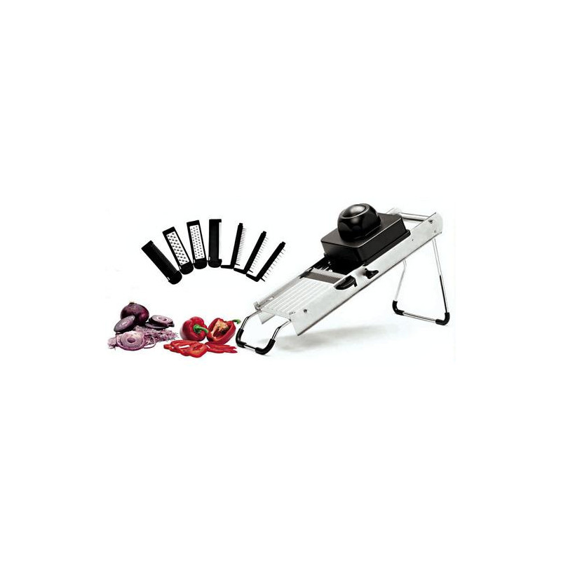 This mandoline in 18/10 stainless steel is a professional tool designed for slicing vegetables and adding creative flair to your dishes. Its sturdy construction ensures precision and durability, providing consistent results every time. Perfect for enhancing any culinary creation, it's an essential accessory for both professional and home kitchens.