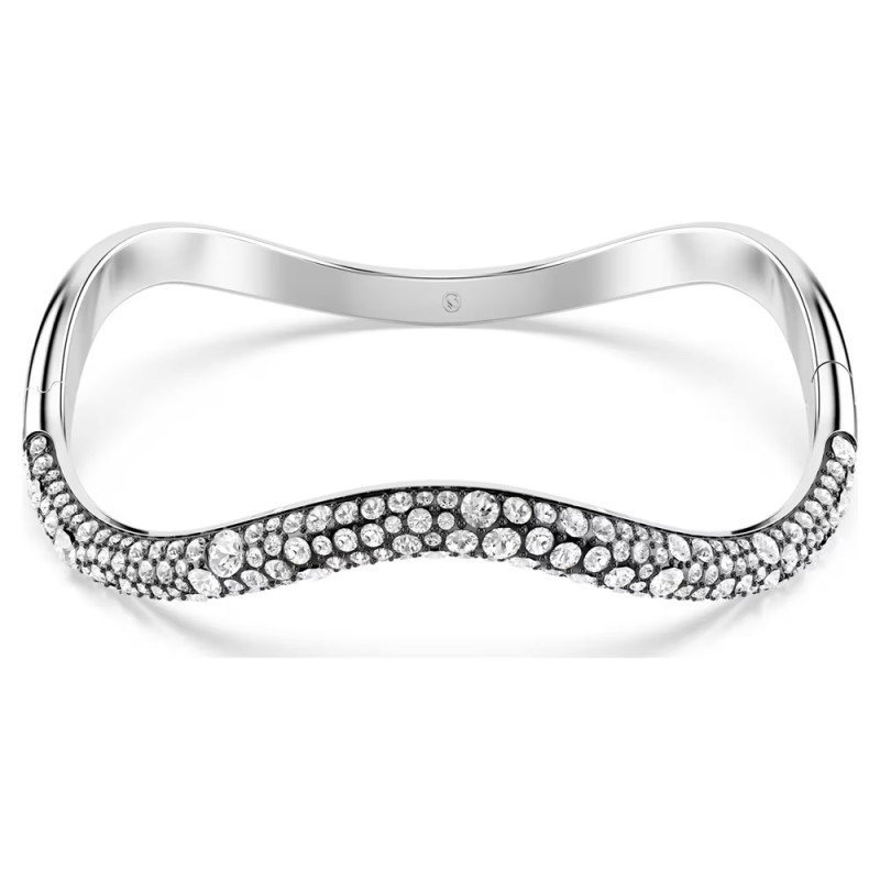 Collezione: Sublima Lunghezza: S - 6.1 cm | M - 6.5 cm | L - 6.9 cm Ampiezza: 1.5 cm Diametri interni: S - 5.4 x 4.8 cm | M - 5.6 x 5.2 cm | L - 6.2 x 5.6 cm Distanza apertura: 6.5 cm Materiale: Cristalli, Placcatura rodio Colore: Bianco Tipo di fermaglio: A ribalta