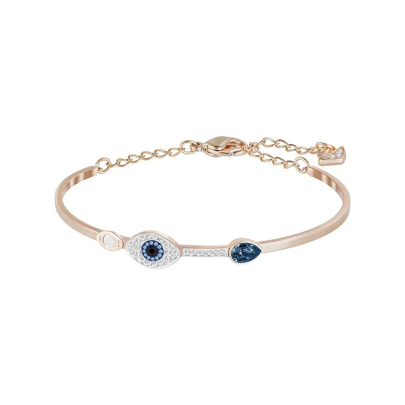 Questo delizioso bracciale rigido propone un efficace contrasto tra il metallo placcato oro rosa, il pavé di cristallo e i cristalli azzurri. Impreziosito da due motivi a occhio e da un cristallo azzurro a goccia, il gioiello è completato da una chiusura regolabile che ne garantisce una vestibilità sicura e confortevole. Articolo nr.: 5171991 Colore: Azzurro Misura: 5.9/4.5 cm Materiale: Mix di placcature