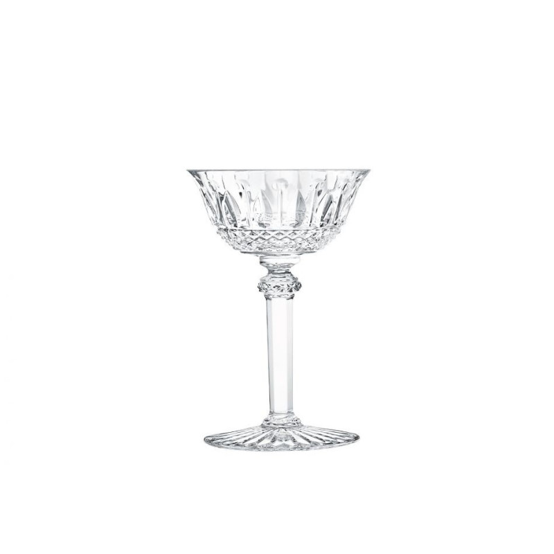 La collezione Tommy, un classico della produzione Saint-Louis dal 1928, colpisce per eleganza e ricchezza. Per la sua realizzazione la maison utilizza tre diverse tecniche di taglio: sfaccettato, a sfera e a diamante. La fine lavorazione del cristallo dona splendore alla tavola, facendone apprezzare la sua magia. Calice Coppa Champagne Tommy Dimensioni: Altezza 146 mm, Diametro 100 mm, Volume 16 cl Materiale: bicchiere in cristallo Codice prodotto: 12408400