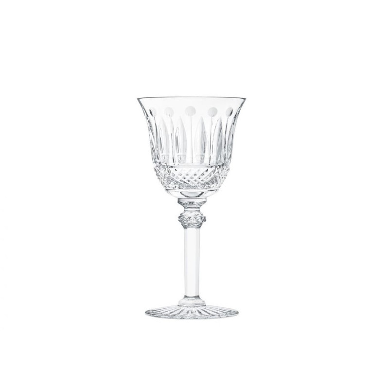 La collezione Tommy, un classico della produzione Saint-Louis dal 1928, colpisce per eleganza e ricchezza. Per la sua realizzazione la maison utilizza tre diverse tecniche di taglio: sfaccettato, a sfera e a diamante. La fine lavorazione del cristallo dona splendore alla tavola, facendone apprezzare la sua magia. Calice vino N.° 4 Tommy Dimensioni: Altezza 151 mm, Diametro 75 mm, Volume 11 cl Materiale: bicchiere in cristallo Codice prodotto: 12400400