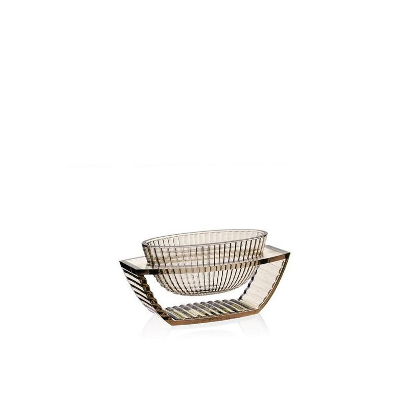 CENTROTAVOLA U SHINE, 1218 - KARTELL Eugeni Quitllet ha creato una collezione esclusiva di vasi decorativi in PMMA trasparente per Kartell. La linea comprende un vaso e un centrotavola che si distinguono per le loro eleganti geometrie ispirate allo stile déco. Ciò che rende questi due vasi veramente speciali è la finitura del materiale plastico, così sofisticata da conferire loro l'aspetto di autentici oggetti di cristallo. Materiale: PMMA trasparente o colorato in massa Dimensioni: L 29 x P 15 cm Altezza: 14 cm Peso Peso: 1,05 kg