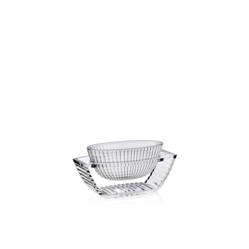 CENTROTAVOLA U SHINE, 1218 - KARTELL Eugeni Quitllet ha creato una collezione esclusiva di vasi decorativi in PMMA trasparente per Kartell. La linea comprende un vaso e un centrotavola che si distinguono per le loro eleganti geometrie ispirate allo stile déco. Ciò che rende questi due vasi veramente speciali è la finitura del materiale plastico, così sofisticata da conferire loro l'aspetto di autentici oggetti di cristallo. Materiale: PMMA trasparente o colorato in massa Dimensioni: L 29 x P 15 cm Altezza: 14 cm Peso Peso: 1,05 kg
