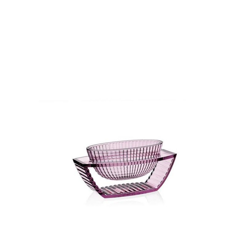 CENTROTAVOLA U SHINE, 1218 - KARTELL Eugeni Quitllet ha creato una collezione esclusiva di vasi decorativi in PMMA trasparente per Kartell. La linea comprende un vaso e un centrotavola che si distinguono per le loro eleganti geometrie ispirate allo stile déco. Ciò che rende questi due vasi veramente speciali è la finitura del materiale plastico, così sofisticata da conferire loro l'aspetto di autentici oggetti di cristallo. Materiale: PMMA trasparente o colorato in massa Dimensioni: L 29 x P 15 cm Altezza: 14 cm Peso Peso: 1,05 kg