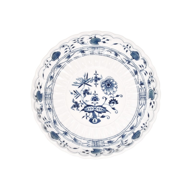 Produttore: Manifattura Porcellane di Stato Meissen Collezione: Nuovo Ritaglio, decoro Cipolla Blu Il decoro blu cobalto su porcellana bianca è stato ispirato da i decori dell' Asia orientale. Articolo: cesto rotondo Codice : 00430/800101 Dimensioni: diametro 20 cm Manutenzione: adatto alla lavastoviglie.