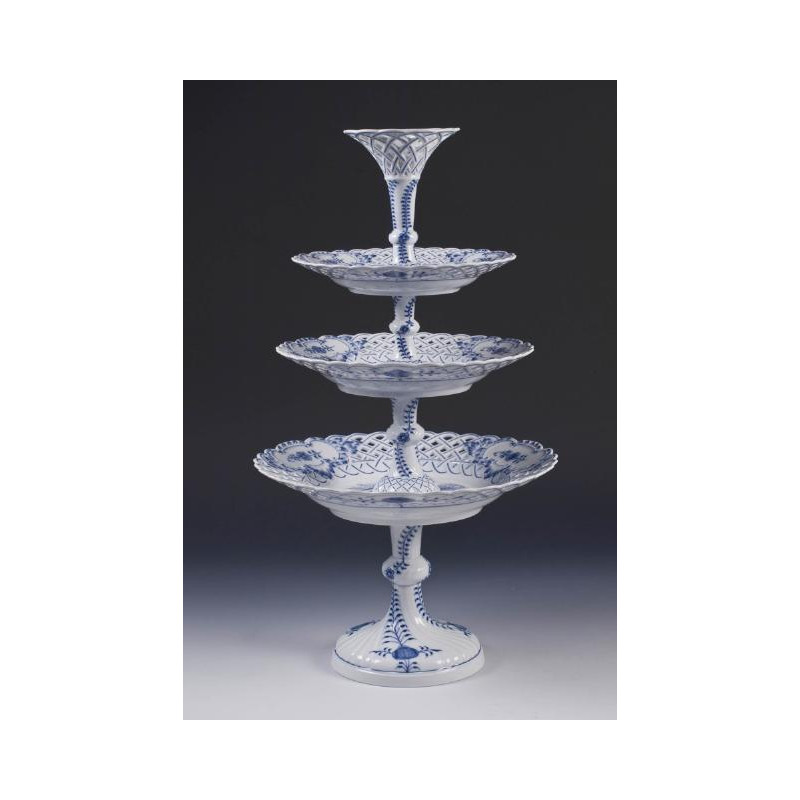 Produttore: Manifattura Porcellane di Stato Meissen Collezione: Nuovo Ritaglio, decoro Cipolla Blu Il decoro blu cobalto su porcellana bianca è stato ispirato da i decori dell' Asia orientale. Articolo: fruttiera tre piani Codice : 54855/800101 Dimensioni: altezza 62,5 cm.