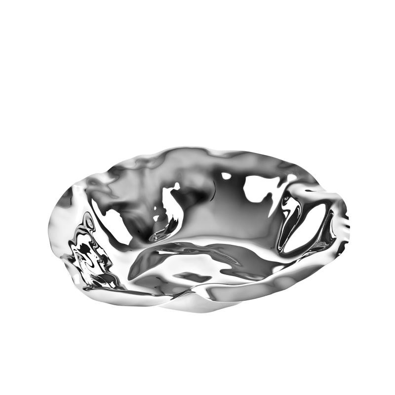 ALESSI SARRIA' Cestino rotondo in acciaio inossidabile 18/10 con bordo decorato con la tecnica dello stampaggio a freddo della lastra di acciaio. Pratico per contenere il pane e la frutta, ideale per un'apparecchiatura moderna. codice: 90084 dimensioni: h. 6.5 cm diametro: 27.5 cm Pratico per contenere il pane e la frutta, ideale per un'apparecchiatura moderna.