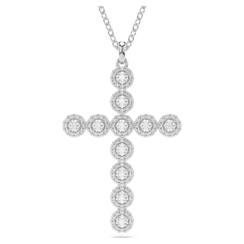 • PENDENTE CROCE INSIGNE, BIANCO, PLACCATO RODIO 5675573